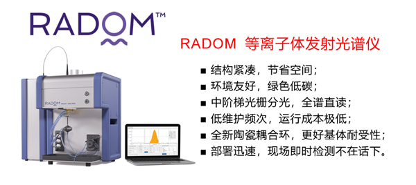利曼RADOM等離子體發射光譜儀ICP-OES顛覆性設計采用陶瓷環取代傳統金屬水冷線圈,RF射頻能量利用率更高,由此電感耦合的穩定且高性能的等離子體,具有更好基體耐受性,有效解決復雜樣品分析檢測中遇到的難點與痛點,對高鹽、貴金屬、地礦類樣品,油品如柴油、潤滑油,電鍍液、發動機冷卻液等樣品有成熟的應用。緊湊的模塊化設計,易于裝箱應對現場檢測的同時,還能有效降低維護頻次,對操作人員更加友好。