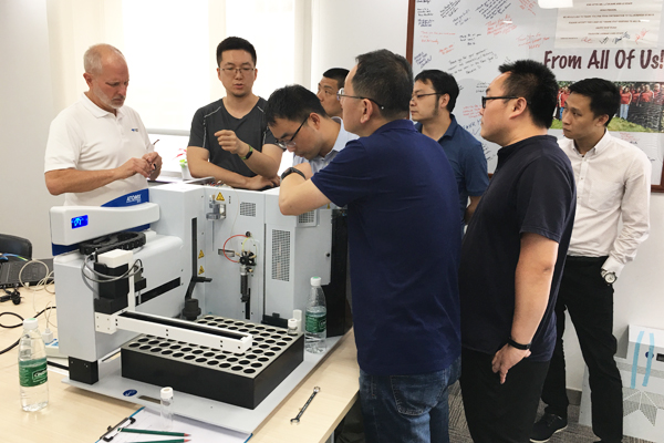2019年6月17-21日,美國Tekmar公司年度例行技術培訓再次來到利曼公司北京總部。在為期一周的時間里,全球售后經理Tom Rohrkemper主要圍繞Atomx XYZ全自動固液一體吹掃捕集及HT3頂空進樣器展開,同時前往清華大學合作實驗室對三款TOC總有機碳分析儀產品(Lotix/Torch/Fusion)對利曼技術團隊進行了培訓。