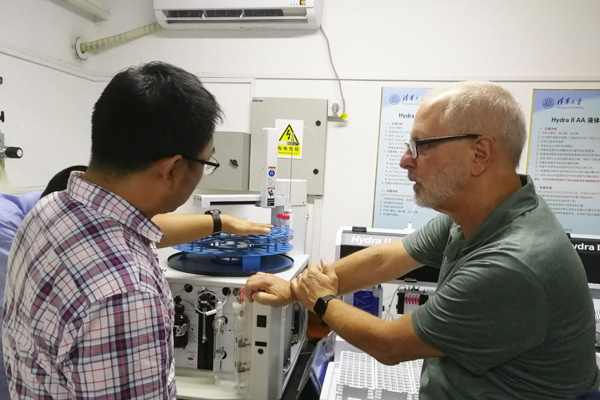 在利曼中國-清華大學熱能工程研究所聯合實驗室,Tom對Torch催化燃燒法總有機碳分析儀及Fusion紫外-過硫酸鹽氧化總有機碳分析儀的日常維護工作及軟件操作要點做了演示。另外結合搭配Lotix總有機碳分析儀使用的LSS固體進樣模塊,著重講解了連接注意事項及模塊安裝測試要點。