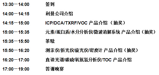 美國利曼公司多年來一直秉承“用戶滿意、技術(shù)創(chuàng)新、產(chǎn)品優(yōu)良”的企業(yè)宗旨,為實驗室不斷提出眾多完善的解決方案。為了和客戶更好的進行產(chǎn)品技術(shù)的溝通,我公司將于2014年10月31日在沈陽國際皇冠假日酒店(沈陽市皇姑區(qū)黃河南大街88號,024-86311111)舉辦實驗室儀器大型技術(shù)交流會,屆時將有ICP、測汞儀、TOC、吹掃捕集濃縮儀、水分分析儀、元素分析儀、蛋白質(zhì)分析儀、微波消解系統(tǒng)、酸純化器、折光儀、旋光儀、密度計等產(chǎn)品展示。美國利曼公司工程師將會提供專業(yè)的儀器講解,熱切期待您的參加!