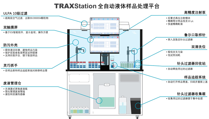 TRAXStation全自動(dòng)液體樣品處理平臺(tái)根據(jù)指令自動(dòng)完成并簡(jiǎn)化整個(gè)樣品制備過程,確保無污染處理,為后續(xù)不同分析儀使用實(shí)現(xiàn)無縫集成。